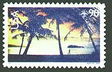 Со времени присоединения этой территории к США имел место один выпуск почтового ведомства этой страны, посвящённый острову Гуам. Это была вышедшая 1 июня 2007 года, в серии «Scenic American Landscapes» марка авиапочты достоинством в 90 центов и изображающая восход солнца над пляжем Хагатнья-Бей.