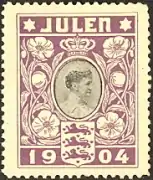 В 1904 году в Дании появились первые в мире благотворительные марки (виньетки). Они распространялись через почтовые учреждения, но не служили для оплаты почтовой корреспонденции. Средства, собранные от продажи этих марок, перечислялись на благотворительные цели — для сбора денег в фонд борьбы с туберкулёзом. Марки поступали в продажу к Рождеству и поэтому назывались «Julmarken» («рождественские марки»)[16].