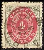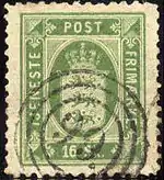 Почтовые марки гасились номерными штемпелями, представлявшими собой цифру, заключённую в несколько окружностей. Цифры соответствовали определённому почтовому отделению: «1» — Копенгаген, «2» — отделение в Гамбурге, «5» — Орхус и т. д.