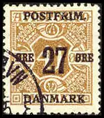 В июне — ноябре 1918 года, в связи с введением новых почтовых тарифов, на расчётных марках были сделаны надпечатки новой стоимости и текста «Postfrim. / Danmark». Эти марки использовались в качестве почтовых[5][6][7].