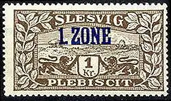 Население первой зоны высказалось за присоединение к Дании, которая 19 мая её заняла. На следующий день здесь в обращение поступили марки с рисунками плебисцитарного выпуска, но в датской валюте и с синей надпечаткой «1 ZONE» (1 зона). Первоначально гашение марок производилось немецкими штемпелями, которые постепенно были заменены датскими.
