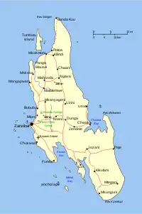 ![]() Карта Занзибара ![]() Острова Занзибар и Пемба относительно Британской и Германской Восточной Африки |