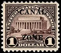 ![]() Однодолларовая почтовая марка США 1925 года с надпечаткой для использования в Зоне Панамского канала (Sc #?) | |