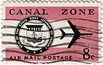 Первые авиапочтовые марки Зоны Панамского канала увидели свет в 1929 году[1]. На марках надпись: «Air mail» («Авиапочта»)[2].