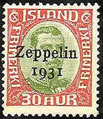 В мае 1931 года для оплаты корреспонденции, перевозимой дирижаблем «Граф Цеппелин», прилетавшим в Рейкьявик 1 июля, были выпущены три марки с надпечаткой «Zeppelin 1931». Дирижабль не приземлялся в Исландии, однако он снижался на небольшую высоту для загрузки и выгрузки почтовой корреспонденции.[2]
