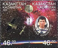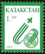 ![]() Первая почтовая марка Казахстана (1992). Художник Г. Комлев (Sc #1) | |