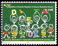 Первые марки частично признанной Республики Косово вышли вскоре после провозглашения независимости — 7 марта 2008 года. Серия из двух миниатюр посвящалась Дню учителя. На них была дана надпись на трёх языках албанском, английском и сербском (латиницей): «Республика Косово», номинал указан в евро.[6]