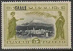 Последняя надпечатка сделана 15 июня 1923 года на 45 почтовых и доплатных марках. Надпечатано слово «ΕΠΑΝΑΣΤΑΣΙΣ 1922» («Революция») в честь Греческой революции 1922 года, которая привела ко второму отречению от престола царя Константина I. Надпечатка наносилась в Национальной типографии в Афинах с указанием нового номинала в греческих лептах («ΛΕΠΤΑ») или драхмах («ΔΡΑΧΜΗ»).