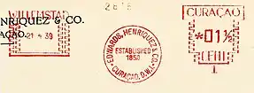 - Примеры ранних и современных франкотипов Кюрасао, напечатанных в Виллемстаде