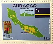 Кюрасао начало выпуск собственных почтовых марок после распада Нидерландских Антильских островов 10 октября 2010 года. На первой изданной почтовой марке, отметившей получение самостоятельности, была изображена карта острова[1][11][≡].