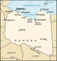 ![]() Карта Ливии до объединения: Триполитания, Киренаика и Феццан ![]() Карта современной Ливии |