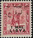 Почтовая марка Великобритании с надпечаткой «M. E. F.» для использования в оккупированной Ливии, 1942