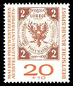 ![]() Почтовая марка Любека на современной марке почты Германии | |