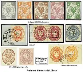 Почтовые марки вольного города-республики Любека были в почтовом обращении в 1859—1867 годах[4]. Всего эмитировано 14 почтовых марок[4].