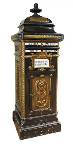 Почтовая карета (1880) и старинный почтовый ящик. Музей почты и телекоммуникаций Люксембурга |