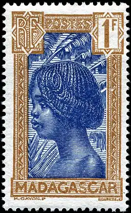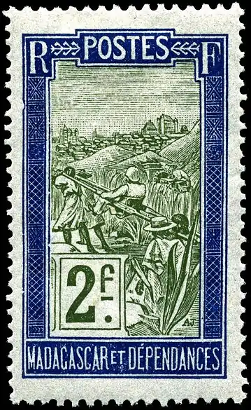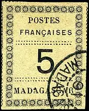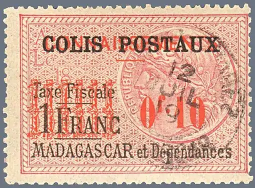 В 1891 году появилась серия марок с оригинальной надписью фр. «Poste française. Madagascar» («Французская почта. Мадагаскар»)[3].
