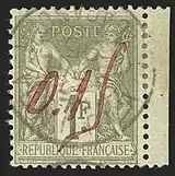 В 1895 году в Мадзунге (Majunga; ныне Махадзанга, город на острове Мадагаскар) случилась нехватка марок номиналом в 15 сантимов. По этой причине местный почтмейстер отдал распоряжение сделать переоценку марок Франции номиналами в 25 сантимов и 1 франк. На них с помощью красных чернил наносилась надпись «0.15» (то есть «15 сантимов»). Однако на следующий день эти марки были надпечатаны ручным штампом с цифрой «15», поскольку были обнаружены попытки смыть чернильную надпись[3].