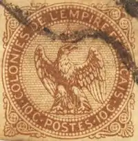 Первые марки из серии «Имперский орёл», общие для всех французских колоний, поступили в конце 1861 — начале 1862 года. Марки были отправлены на Майотту и на Носи-Бе, северный мадагаскарский остров. Самое раннее известное франкированное марками письмо с Майотты датировано декабрём 1863 года.