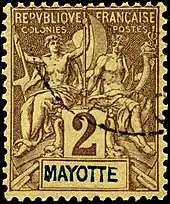 В 1890-е годы, как и в случае других французских колоний, для острова был разработан новый рисунок почтовых марок с указанием наименования колонии, поскольку почта стала нести убытки от незаконной переправки марок из колоний с низкой стоимостью денежной единицы в колонии с высокой стоимостью денежной единицы. На Майотте такие марки появились в ноябре 1892 года.