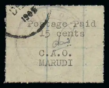 - Lot 1407 / Sale 5711 (англ.). Auction Results: Stamps. L.: Christie's (19 ноября 1996). — Гашёная виньетка Маруди: «Postage Paid / 15 cents / C. A. O. / MARUDI», машинописная копия, слегка потрёпанная по краям. — «Used Marudi label: Postage Paid / 15 cents / C. A. O. / MARUDI, a carbon copy, a little ragged around edges.». Дата обращения: 21 января 2016. Архивировано 21 января 2016 года.