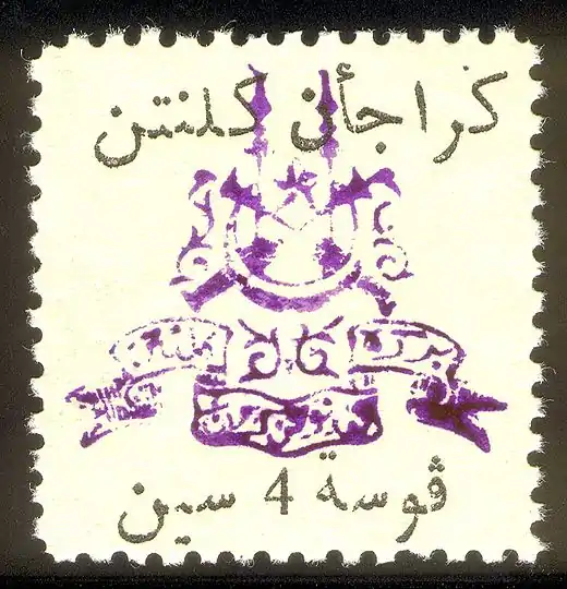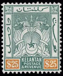 - Келантан: 1 цент фуксиево-красный, 10 центов красный, 20 центов ярко-пурпурный, 20 центов жёлтый.