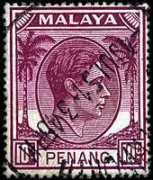 - Пенанг: 5 центов жёлтый, 5 центов красный, 5 центов синий, 5 центов синий и жёлтый, 6 центов жёлтый, 15 центов зелёный, 15 центов чёрный, 20 центов ярко-пурпурный, 20 центов жёлтый.