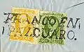 Цвет названия округа почти всегда был чёрным, но известны красные, синие и фиолетовые надпечатки. В течение определенного времени в 1858 году почтмейстер Сакатекаса, который бежал из этого города в Агуаскальентес, чтобы избежать боевых действий во время войны за реформу, но забыл свой резиновый штемпель, вписывал «Zacatecas» («Сакатекас») от руки.