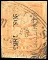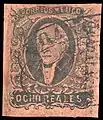 Восемь реалов, 1856, надпечатка и почтовый штемпель округа Пуэбла