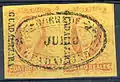 После появления почтовых марок в 1856 году некоторые почтовые отделения завели новые почтовые штемпели, в то время как другие продолжали годами пользоваться имеющимися резиновыми штемпелями с названием города для гашения новых почтовых марок, так что на конвертах с марками можно обнаружить оттиски очень старых резиновых штемпелей[11].