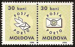 В ноябре 1994 года в Молдавии вышли две доплатные марки с оплаченным купоном номиналом в 30 и 40 баней с изображением почтового голубя и письма (на купоне).