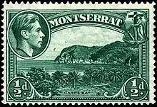 Почтовая марка Монсеррата номиналом в полпенса, 1942 г.