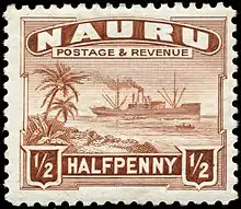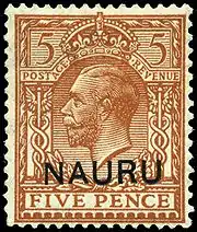 ![]() Почтовая марка Великобритании с надпечаткой для использования на Науру, 1916 | |