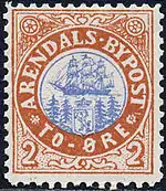 Местные городские почты, выпускавшие собственные марки, существовали в ряде городов Норвегии (Бергене, Арендале и других) в период с 1865 по 1891 год[5][6].