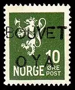 В феврале 1934 года на остров Буве прибыла антарктическая экспедиция на корабле «Мильфорт». По этому случаю на норвежских марках пяти номиналов были сделаны ручные надпечатки чёрным штампом названия острова — «Bouvet oya» в следующим количестве: 5 эре — 400 штук (из которых 268 были использованы для почтовых нужд); 7 эре — 100 (69 использованы); 10 эре — 1000 (305 использованы); 20 эре — 800 (261 использованы); и 30 эре — 400 (243 использованы). Разрешение на этот выпуск было дано норвежским консулом в Кейптауне (ЮАС). Марки использовались для отправки почтовой корреспонденции участниками экспедиции и экипажем судна. По возвращении экспедиции в Кейптаун письма были погашены штемпелем «CAPE TOWN PAQUEBOT» и отправлены обычным способом. Однако Норвегия отказалась признать надпечатанные марки в качестве официальных. Таким образом, хотя эти марки использовались для оплаты международных почтовых отправлений, они имеют полуофициальный статус[6][10][11].
