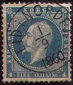 В 1856 году вышли новые знаки почтовой оплаты — серия из двух миниатюр с портретом короля Оскара I, которая была дополнена ещё двумя марками в следующем году. На этих эмиссиях впервые было указано название страны — «Norge», которое с тех пор присутствует на всех марках Норвегии[5][6].