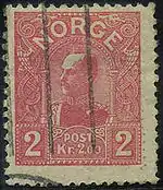 В 1905 году Норвегия расторгла династическую унию со Швецией и низложила шведского короля Оскара II. На престол вступил датский принц Карл, принявший имя Хокона VII. Почтовые миниатюры с его портретом поступили в обращение 10 августа 1907 года. С тех пор на стандартных марках (обычно высших номиналов) изображается портрет короля. В 1926 году был введен новый рисунок стандартных марок — геральдический лев с топором короля Олафа II[5][6].
