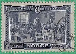 Первые памятные марки Норвегии вышли в 1914 году. Это была трёхмарочная серия к 100-летию заседания стортинга, провозгласившего Норвегию свободной, независимой и неделимой страной[5][6].