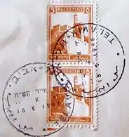 - Марки Британского мандата Палестины с надпечаткой на арабском, английском и иврите