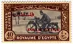 В ноябре 1917 года британская Египетская экспедиционная армия оккупировала Палестину[75][76]. Вначале Египетская экспедиционная армия (и Индийская экспедиционная армия) оказывали гражданскому населению базовые почтовые услуги бесплатно, при этом дополнительные услуги оплачивались британскими или индийскими почтовыми марками[75]. От бесплатной пересылки писем отказались, напечатав соответствующие почтовые марки[77][78]. Две марки с надписью «E. E. F.» (сокращённо от «Egyptian Expeditionary Force», Египетская экспедиционная армия) номиналом 1 пиастр и 5 миллиемов были эмитированы в феврале 1918 года[79][80], первые стандартные марки (11 номиналов) вышли в обращение с июня 1918 года[81][82]. Эти марки египетской экспедиционной армии были в употреблении на территории Палестины, Киликии[83], Сирии, Ливана и Трансиордании (Transjordan)[84].