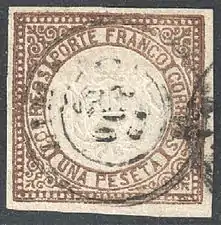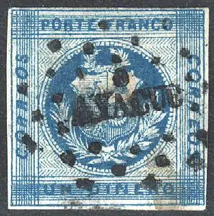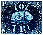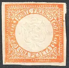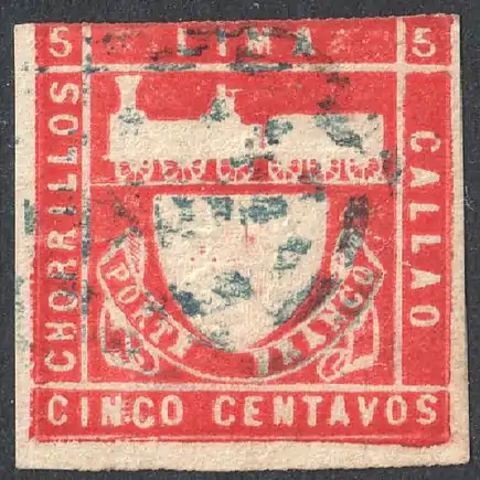 В 1857 году в Перу были введены в обращение литографские почтовые марки, которые были выпущены Тихоокеанской пароходной компанией и использовались в качестве провизориев[2]. На этих оригинальных марках присутствовали буквенные сокращения: «P. S. N. С.» (от англ. «Pacific Steam Navigation Company», «Тихоокеанская пароходная компания»), «OZ.» («унция»[16])[3][≡]. Большинство экземпляров почтовых марок Тихоокеанской пароходной компании, находящихся в обороте, являются фальшивыми.
