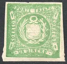 До 1866 года на почтовых марках Перу не указывалось название государства[2]. Однако отдельные перуанские марки без названия страны ещё появлялись на протяжении некоторого времени после этого.