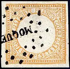 То же, погашенная линейным штемпелем «Moquegua» («Мокегуа»)