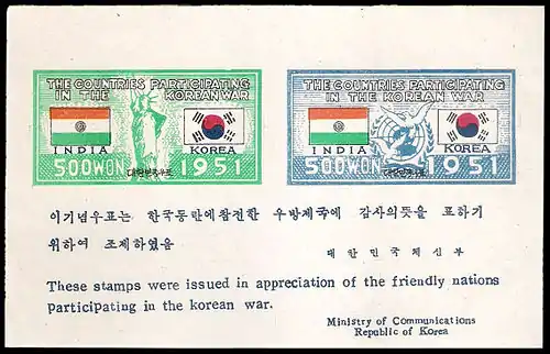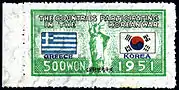 - Южнокорейской почтой издавались почтовые марки[≡] и сувенирные блоки[≡], чествовавшие государства в составе войск ООН во время корейского конфликта.