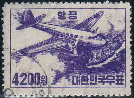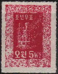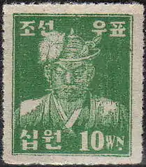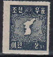 ![]() Одна из первых почтовых марок Южной Кореи (выпуск американской оккупационной администрации, 1946)[^] | |