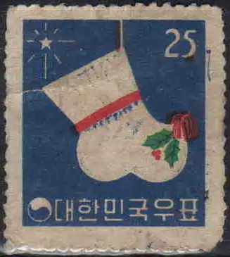 По информации Л. Л. Лепешинского, в течение 1945—1963 годов Южная Корея выпустила 359 почтовых марок. При этом надписи на почтовых марках оригинальных рисунков давались на корейском (кор. «대한민국» — «Корея») и английском языках: англ. «Republic of Korea» («Республика Корея»), «Korea postage» («Почтовый сбор Кореи»), «Korea» («Корея»). В 1949 году надписи на почтовых марках делались на корейском и французском языках: фр. «République de Corée» («Республика Корея»)[3].