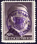 После капитуляции Германии в ряде немецких городов были выпущены местные марки, представлявшие собой главным образом надпечатки на марках прежних выпусков[23][33][34][35].
