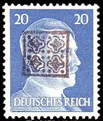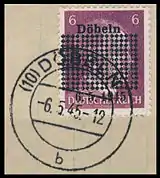 В июне 1945 года в Дёбельне на марке Германии номиналом в 6 пфеннигов была сделана тёмно-фиолетовая надпечатка прямоугольника из «квадратных» точек, названия города «Döbeln» и даты вступления в город советских войск — «6.5.1945». Всего было надпечатано 250 000 марок, из них 160 000 были проданы, остаток тиража уничтожили 13 августа 1945 года[3][40].