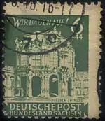 В феврале 1946 года вышла серия из двух почтово-благотворительных марок; их дополнительный сбор шёл в фонд восстановления Дрездена. На марках были изображены Цвингер и новая ратуша и дана надпись «Deutsche Post / Bundesland Sachsen» («Немецкая почта / Федеральная земля Саксония»). Существует большое число разновидностей[3][23].