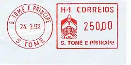 История почты и почтовых марок Сан-Томе и Принсипи, небольшого государства на одноименных островах в Гвинейском заливе у западного побережья Африки со столицей в Сан-Томе, может быть условно разбита на два этапа: период португальской колонии[1][2] (до 1975) и период независимой Демократической Республики Сан-Томе и Принсипи (с 12 июля 1975)[2]. Сан-Томе и Принсипи является членом Всемирного почтового союза (ВПС; с 1977). Современным почтовым оператором страны выступает компания порт. Correios de São Tomé e Príncipe («Почта Сан-Томе и Принсипи»)[3], основанная 1 января 1982 года[4].