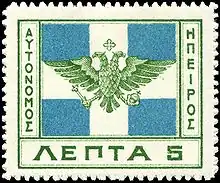 Первыми почтовыми марками, используемыми в Эпире после его отвоевания Грецией у Османской империи в 1912 году, были греческие марки с надпечаткой греч. «ΕΛΛΗΝΙΚΗ ΔΙΟΙΚΗΣΙΣ» («Греческая администрация»). Им на смену в 1913 году пришли вновь выпущенные греческие марки, так называемый «военный выпуск». Оба выпуска предназначались только для использования в недавно оккупированных районах или «новых территориях».